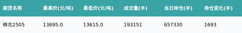 南方财经1月20日电,南财金融终端盘后期货数据显示,郑州商品交易所的棉花主力合约收涨0.48%,收盘报13680.0元/吨,日内资金流入2539.11万元。其他相关指标见下表: